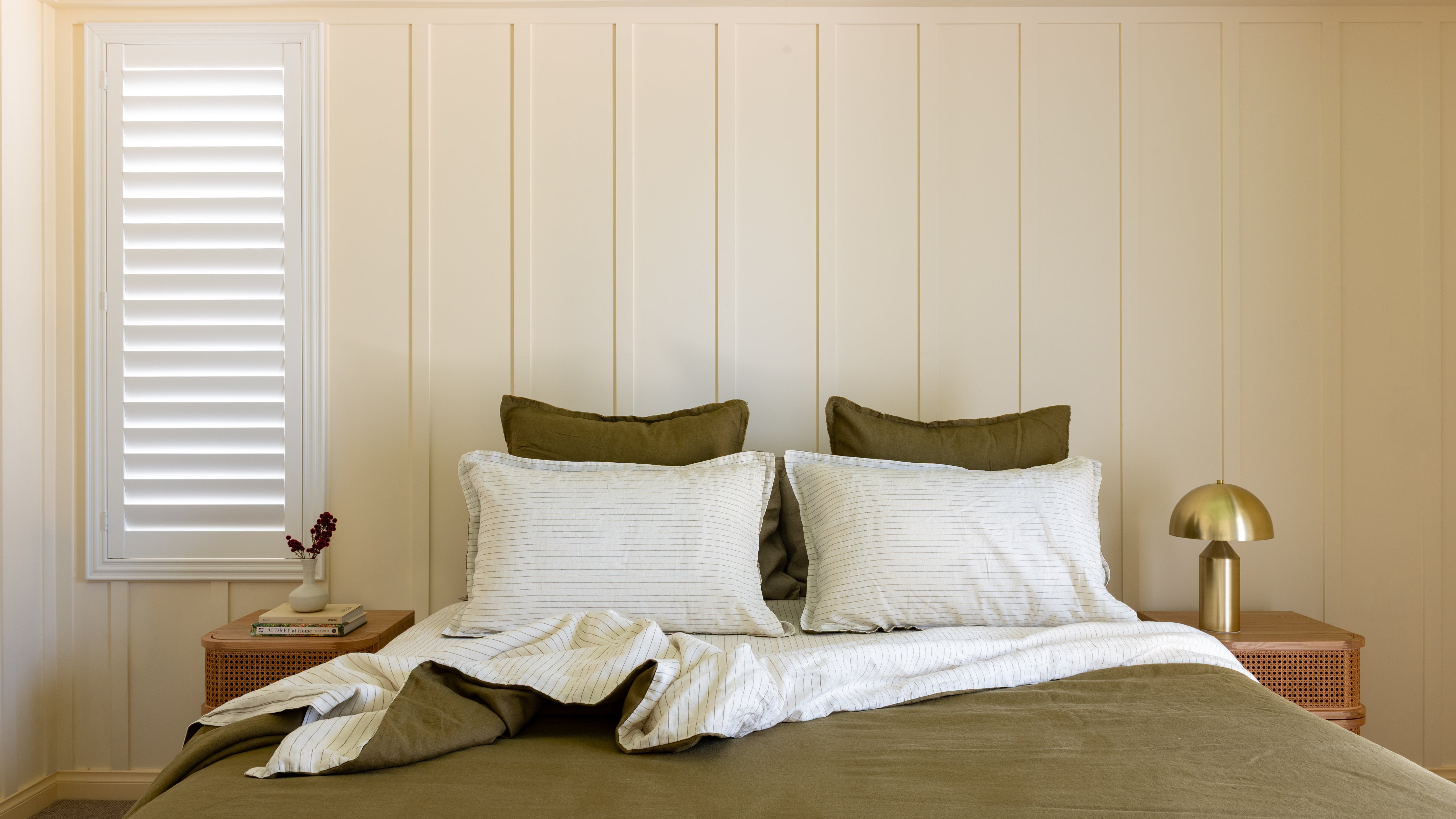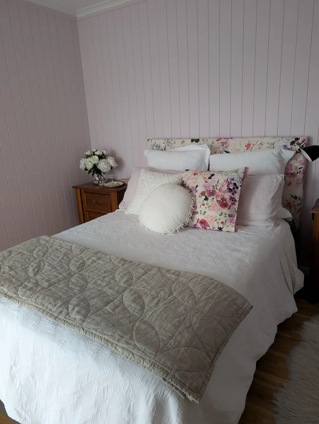 Love the natural color, the beautiful stitching and how soft it feels. A delightful addition to my bedroom.